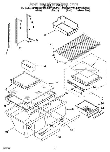 Parts for Whirlpool GR2FHMXPT01: 03 - Shelf Parts