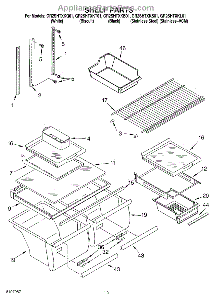 Parts for Whirlpool GR2SHTXKT01: 03 - Shelf Parts