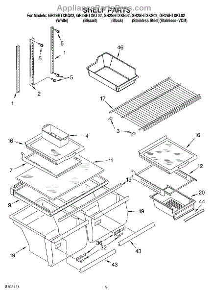 Parts for Whirlpool GR2SHTXKT02: 03 - Shelf Parts