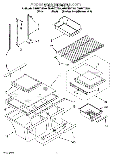 Parts for Whirlpool GR9FHTXTQ00: 03 - Shelf Parts