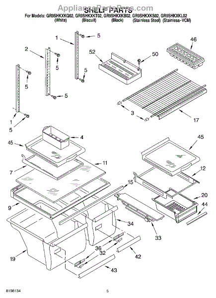 Parts for Whirlpool GR9SHKXKQ02: 03 - Shelf Parts