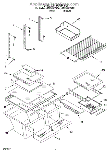 Parts for Whirlpool GR9SHMXKQ01: 03 - Shelf Parts
