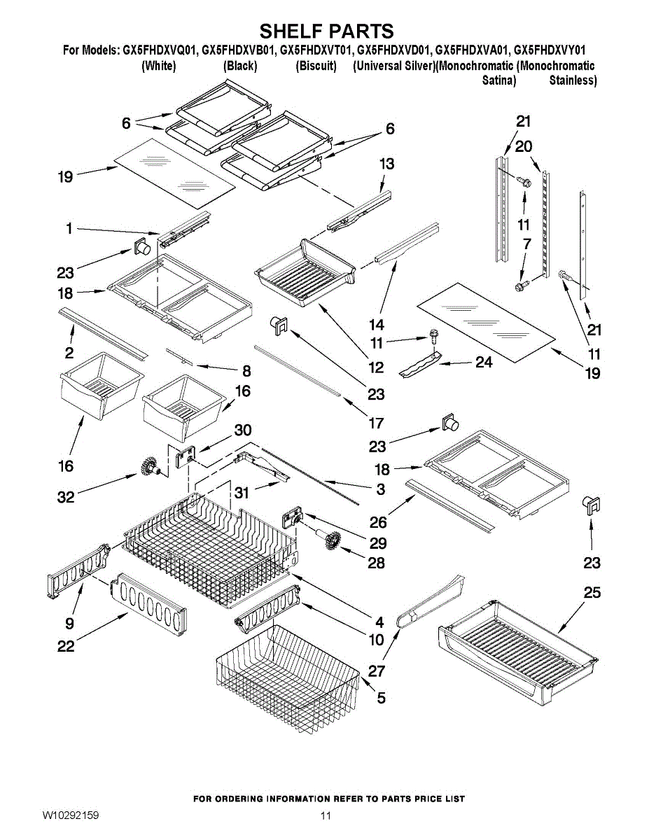 Replace a cracked, chipped, or broken glass shelf in your refrigerator. Restores usable storage space and keeps food items level and organized.