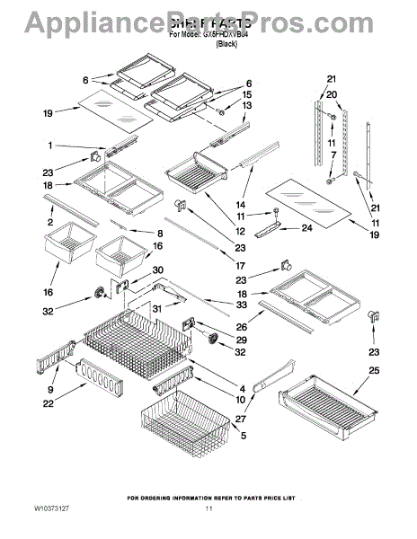 The Shelf Frame is an OEM part for Whirlpool refrigerators. It supports the glass or wire shelves, providing a stable platform for storing food and beverages inside the refrigerator. The shelf frame measures approximately 32 by 19 inches.