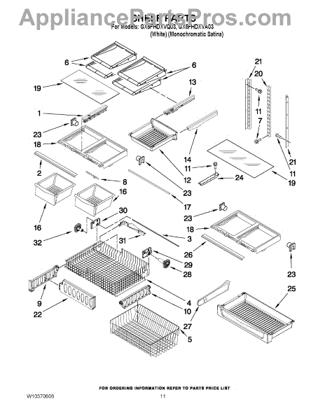 Note: For the right side drawer glide, use part number WP67001053