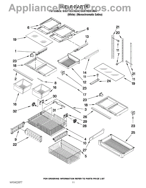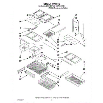 Note: For the right side drawer glide, use part number WP67001053