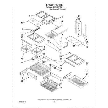 The Shelf Frame is an OEM part for Whirlpool refrigerators. It supports the glass or wire shelves, providing a stable platform for storing food and beverages inside the refrigerator. The shelf frame measures approximately 32 by 19 inches.