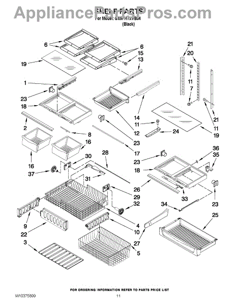 Note: For the right side drawer glide, use part number WP67001053
