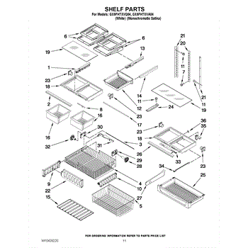 The Shelf Frame is an OEM part for Whirlpool refrigerators. It supports the glass or wire shelves, providing a stable platform for storing food and beverages inside the refrigerator. The shelf frame measures approximately 32 by 19 inches.