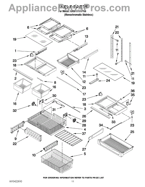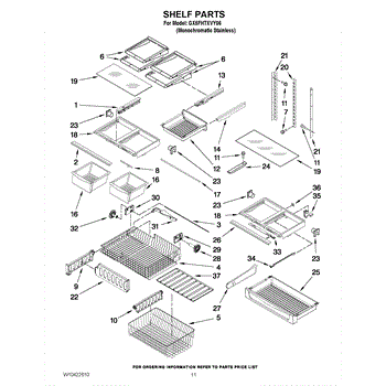 Note: For the right side drawer glide, use part number WP67001053
