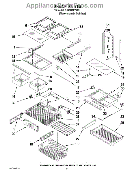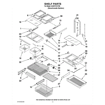 The Shelf Frame is an OEM part for Whirlpool refrigerators. It supports the glass or wire shelves, providing a stable platform for storing food and beverages inside the refrigerator. The shelf frame measures approximately 32 by 19 inches.