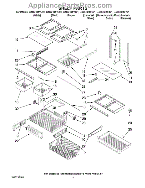 Parts for Whirlpool GX5SHDXVY01: 07 - Shelf Parts