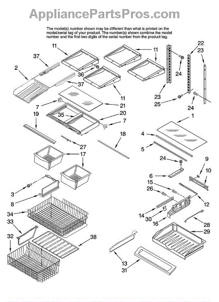 Note: For the right side drawer glide, use part number WP67001053