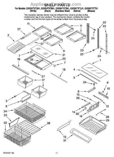 Parts for Whirlpool GX5SHTXTS01: 06 - Shelf Parts
