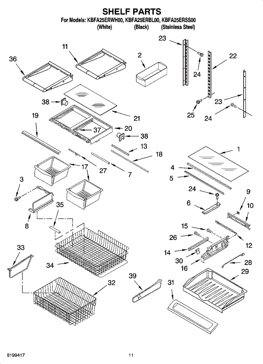 Center ladder support for refrigerator shelves. Replaces worn, cracked, or broken ladders that no longer secure shelving properly. Restores alignment.