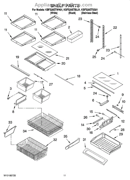 Note: For the left-hand side Pantry Drawer Support, order part number WP12656105.