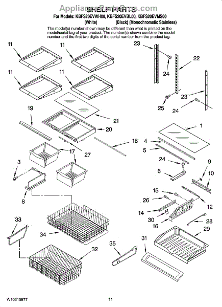 Note: For the left-hand side Pantry Drawer Support, order part number WP12656105.