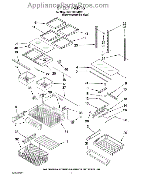Parts for Kitchenaid KBFS25EVMS2: 06 - Shelf Parts