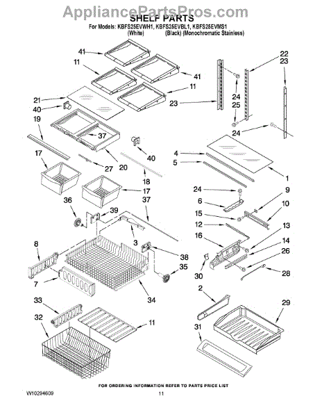 Parts for Kitchenaid KBFS25EVWH1: 06 - Shelf Parts