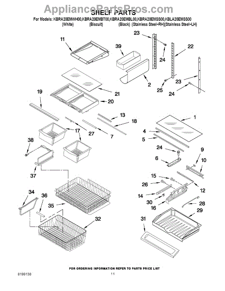 Note: For the left-hand side Pantry Drawer Support, order part number WP12656105.