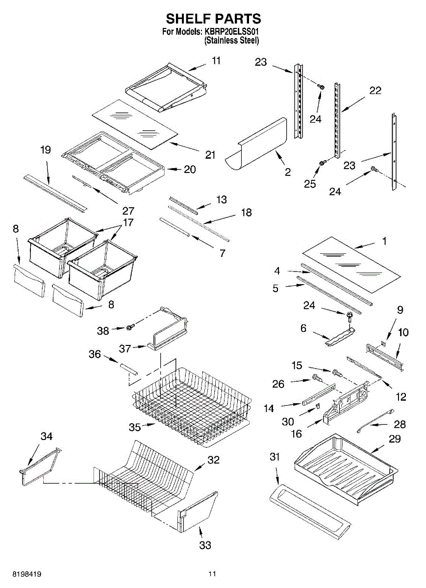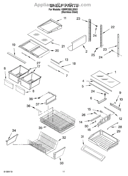 Note: For the left-hand side Pantry Drawer Support, order part number WP12656105.