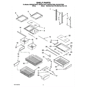 This shelf trim is the front-facing trim piece that secures and finishes a refrigerator shelf, restoring a clean, supported edge and helping keep items from sliding forward. It's a direct-fit replacement for a worn or broken trim. What it does: