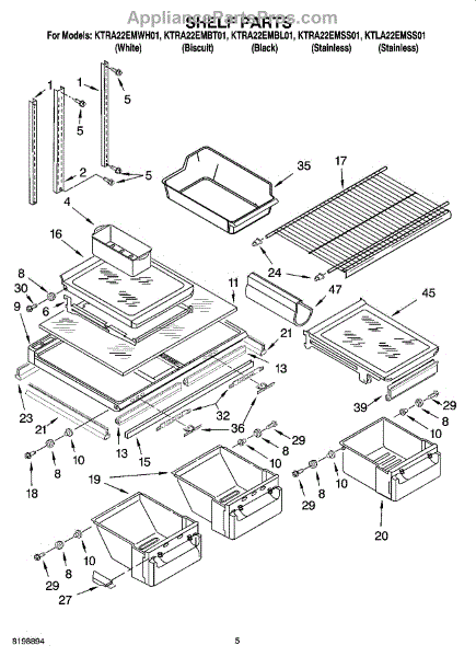 Parts for Kitchenaid KTLA22EMSS01: 03 - Shelf Parts