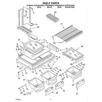 Parts for Kitchenaid KTRS19KKWH03: 03 - Shelf Parts