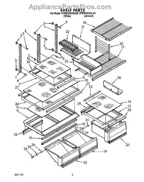 Parts for Kitchenaid KTRS20KXWH20: 05 - Shelf, Lit / Optional Parts