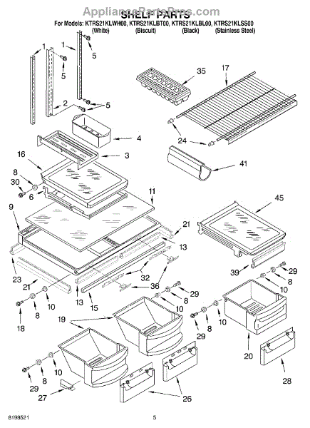 Parts for Kitchenaid KTRS21KLWH00: 03 - Shelf Parts