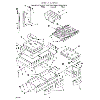 This crisper cover support mounts to the refrigerator liner and holds the crisper cover frame/glass level. Replacing a broken or missing support restores a stable shelf surface and helps the crisper drawers slide and close properly.