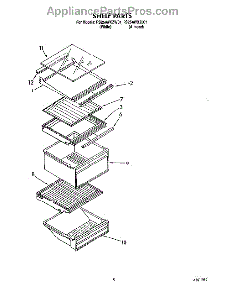 Parts for Whirlpool RS25AWXZW01: 04 - Shelf Parts