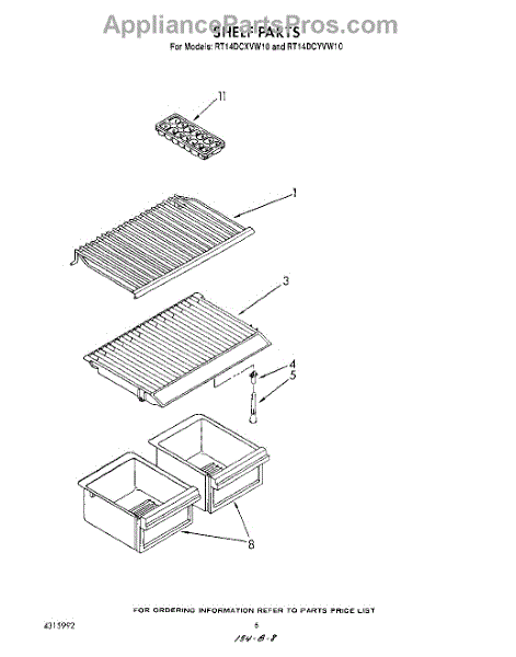 Parts for Whirlpool RT14DCXVG10: 05 - Shelf Parts