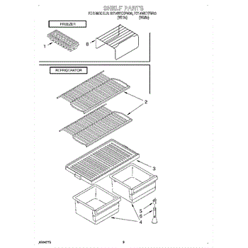 Parts for Whirlpool RT14WKYFW00: 05 - Shelf Parts