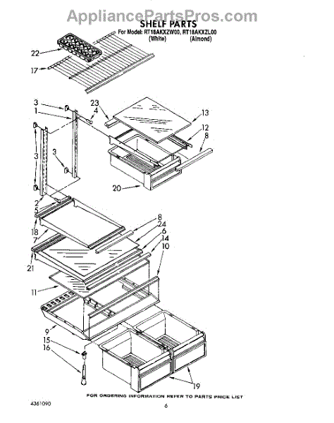 Parts for Whirlpool RT18AKXZL00: 05 - Shelf Parts