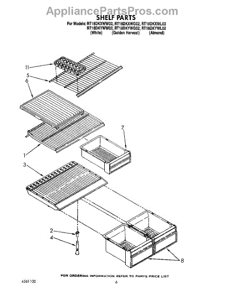 Parts for Whirlpool RT18DKYWL02: 05 - Shelf Parts
