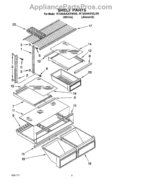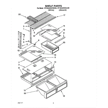 Parts for Whirlpool RT20AKXZL00: 05 - Shelf Parts