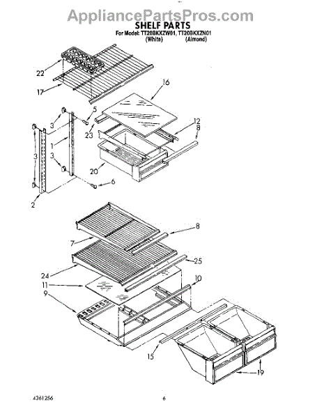 Parts for Whirlpool TT20BKXZW01: 05 - Shelf Parts