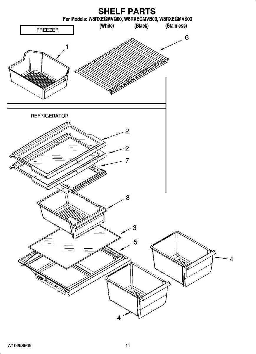 Clear glass shelf that covers crisper drawers in your refrigerator. Replaces broken, cracked, or shattered glass. Slides into place above vegetable bins.