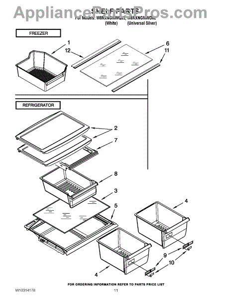 Parts for Whirlpool W8RXNGMWQ02: 06 - Shelf Parts