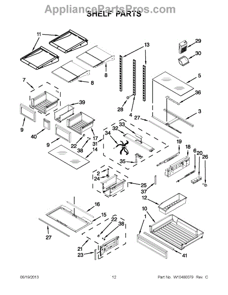 The Storage Drawer is an OEM replacement part for Whirlpool refrigerators. It provides customizable organization for items like snack foods, beverages, and condiments inside the refrigerator cabinet. The drawer measures approximately 27"x 20"x 6". Causes of a bad storage drawer can include broken mounting slides, making it difficult to open or close securely. Overpacking may also cause cracks in the plastic construction over time. Symptoms of a bad storage drawer include: