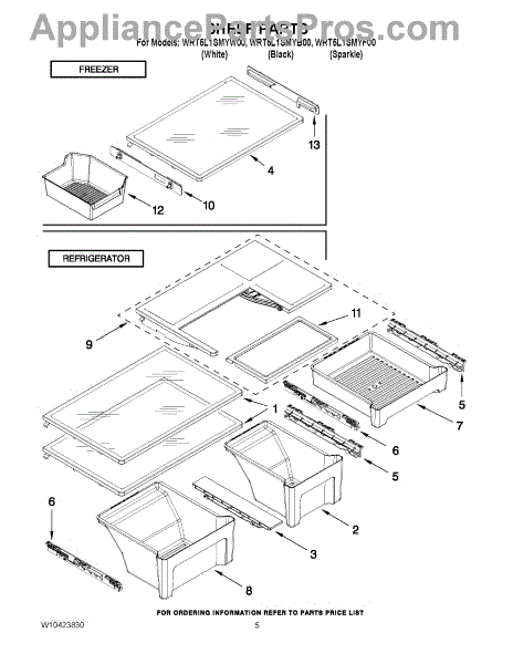 Parts for Whirlpool WRT5L1SMYF00: 03 - Shelf Parts
