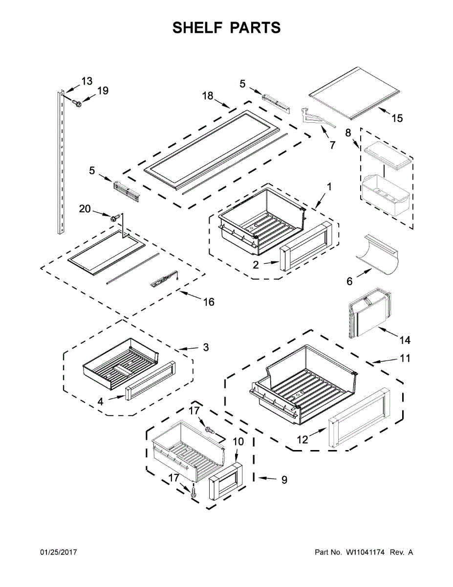 Replacement glass shelf assembly for refrigerator interior storage. Restores usable shelf space when original is cracked, chipped, or broken.