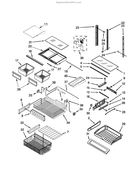 Note: For the left-hand side Pantry Drawer Support, order part number WP12656105.
