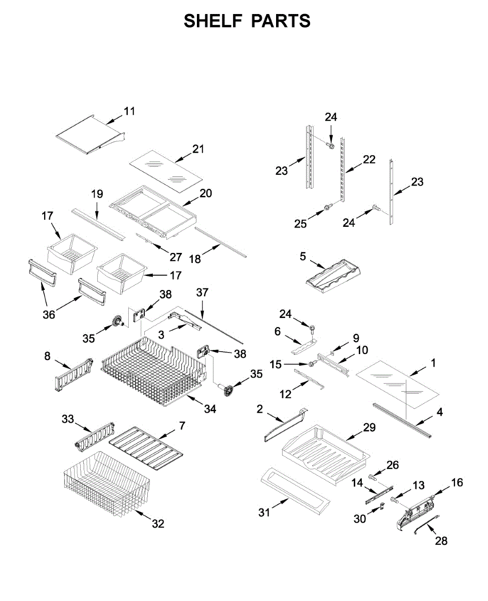 Glass shelf that provides a sturdy, flat surface for organizing refrigerator items and maximizing usable storage. Replaces damaged or missing shelves to restore stable support and proper spacing inside the fridge. What it does: