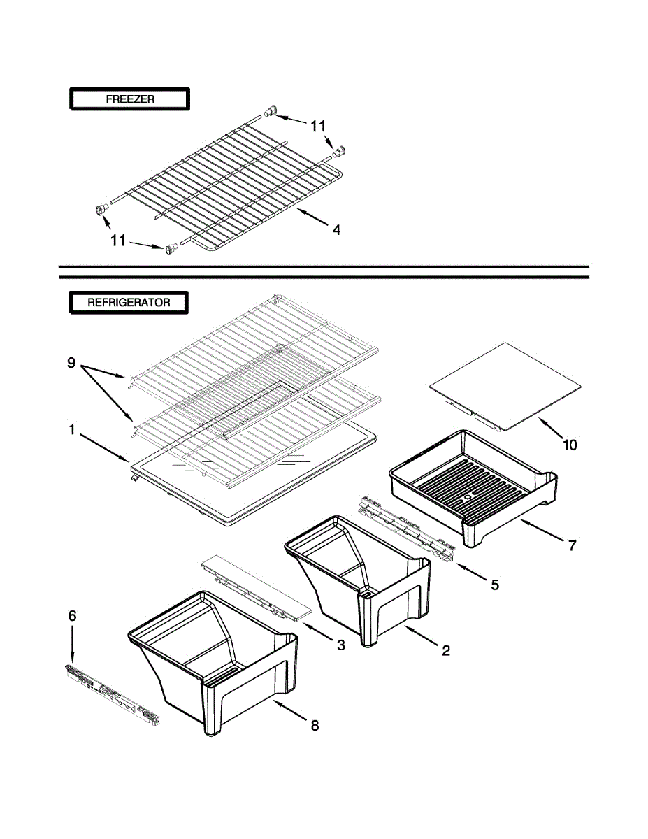 This wire shelf replaces a damaged or missing refrigerator shelf to restore stable storage and proper airflow in the fresh-food compartment. It provides a durable, easy-to-clean surface for storing food and containers. What it does