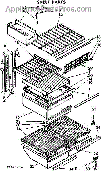 Parts for Kenmore 106.7687440 (1067687440, 106 7687440): Shelf Parts