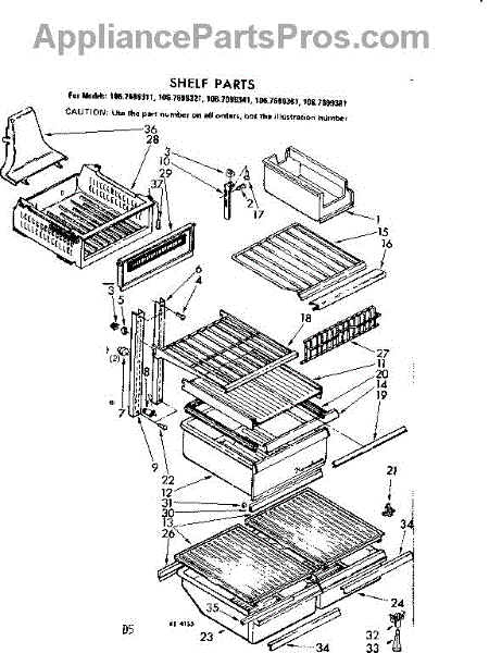 Parts for Kenmore 106.7699361 (1067699361, 106 7699361): Shelf Parts