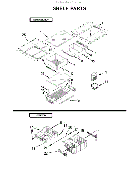 • Replaces a cracked, bent, or missing lower freezer basket to restore proper storage
