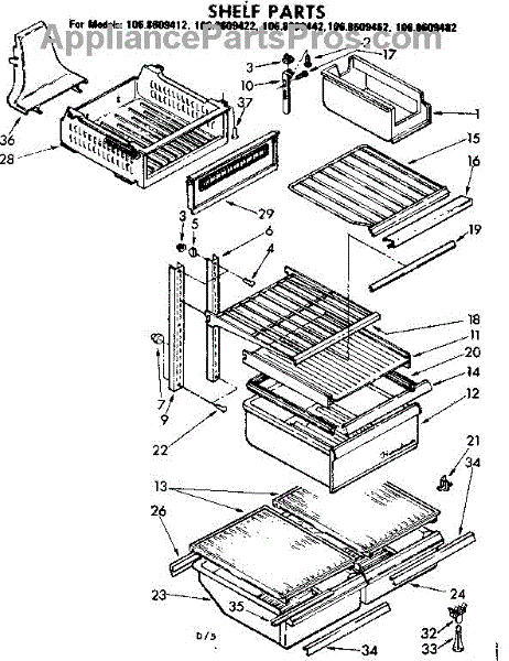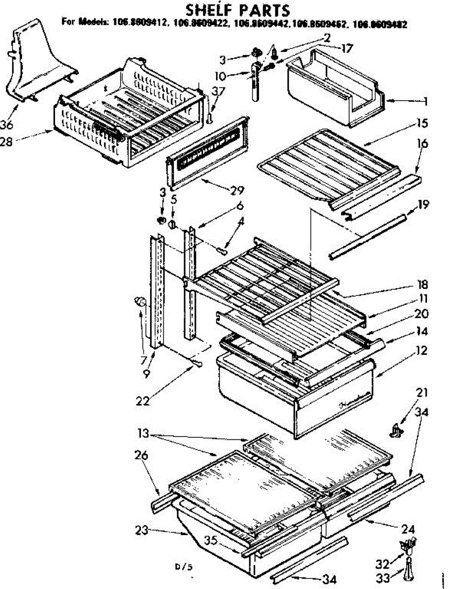 Parts for Kenmore 106.8609462 (1068609462, 106 8609462): Shelf Parts